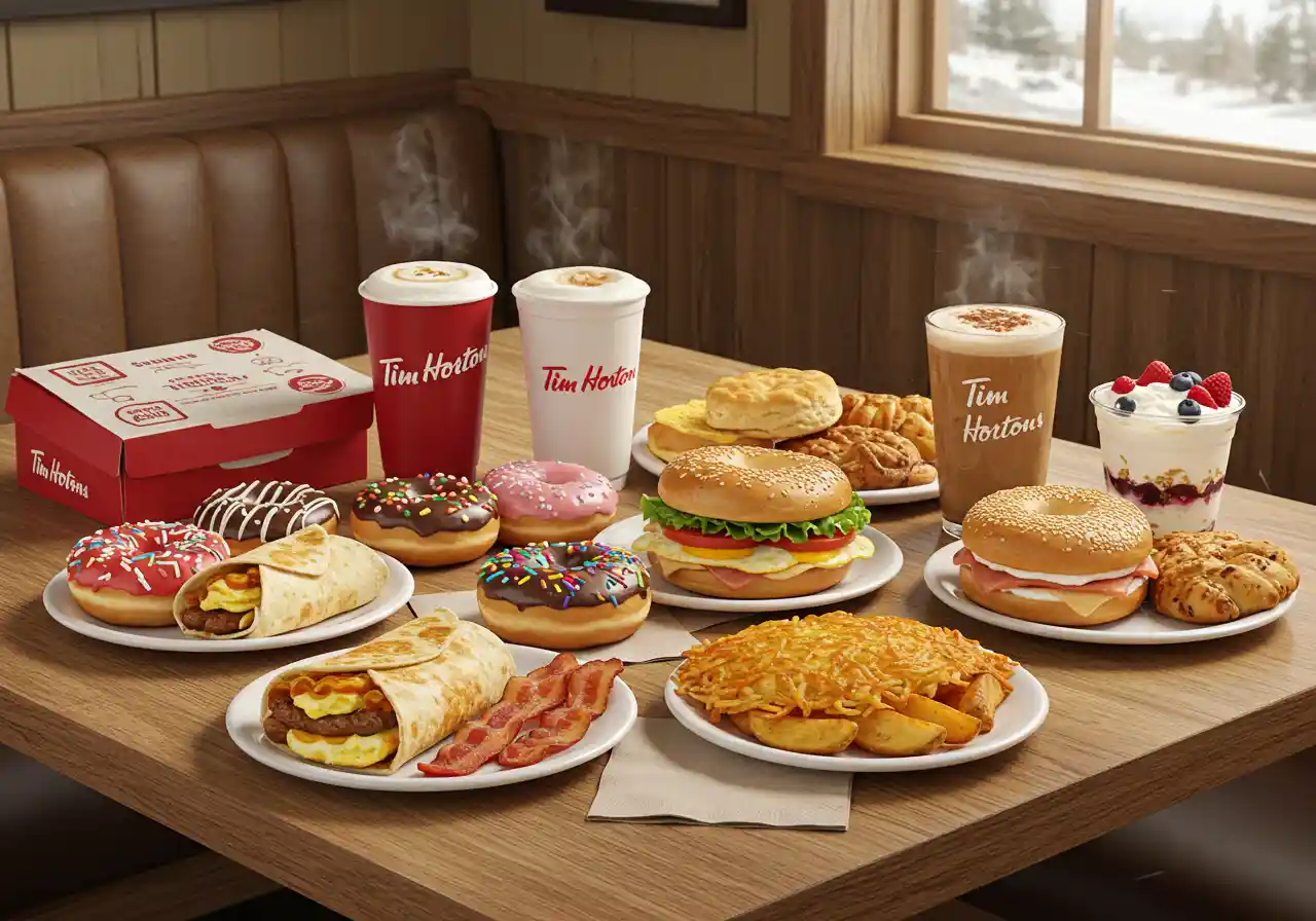 As a passionate foodie who has spent countless mornings in Tim Hortons’ cozy spots across Canada—from Vancouver’s busy downtown to small-town Ontario drive-thrus—I’ve enjoyed every bite of their breakfast menu. Tim Hortons, or “Timmies” as Canadians fondly call it, is more than a coffee shop; it’s a part of our daily routine. Founded in 1964 by hockey legend Tim Horton, Timmies offers comfort, community, and, of course, the famous Double-Double coffee.